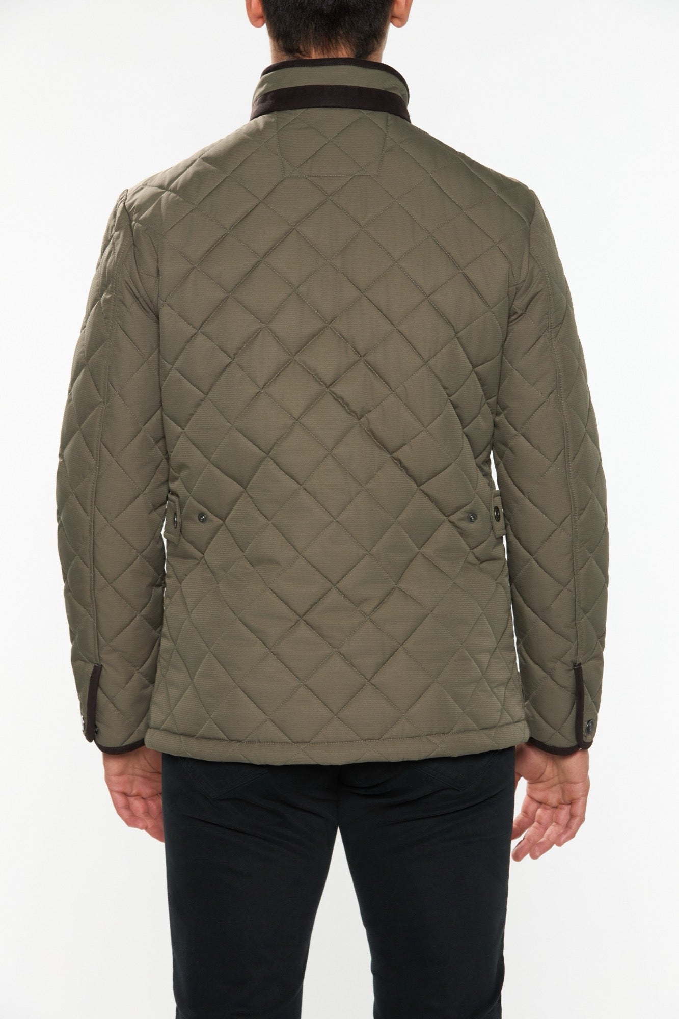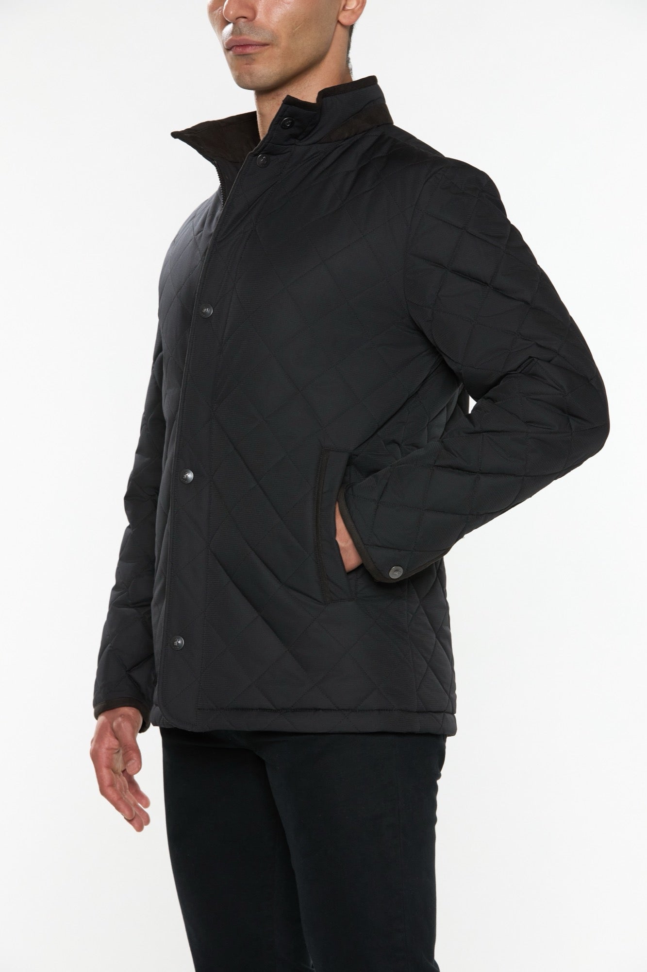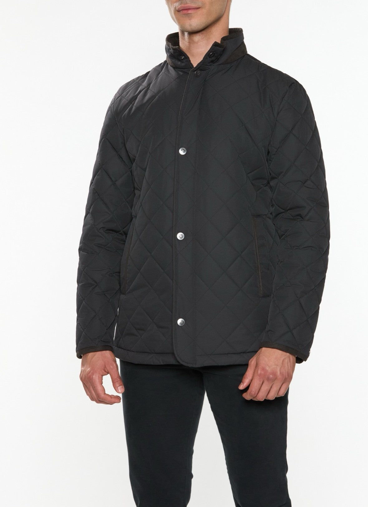 + Classic diamond quilted hipster car coat, quilted with poly fill.